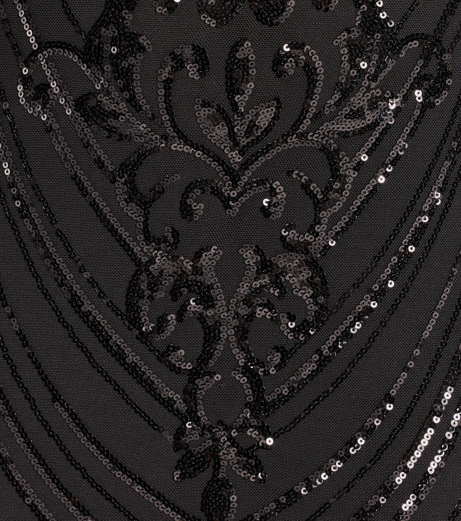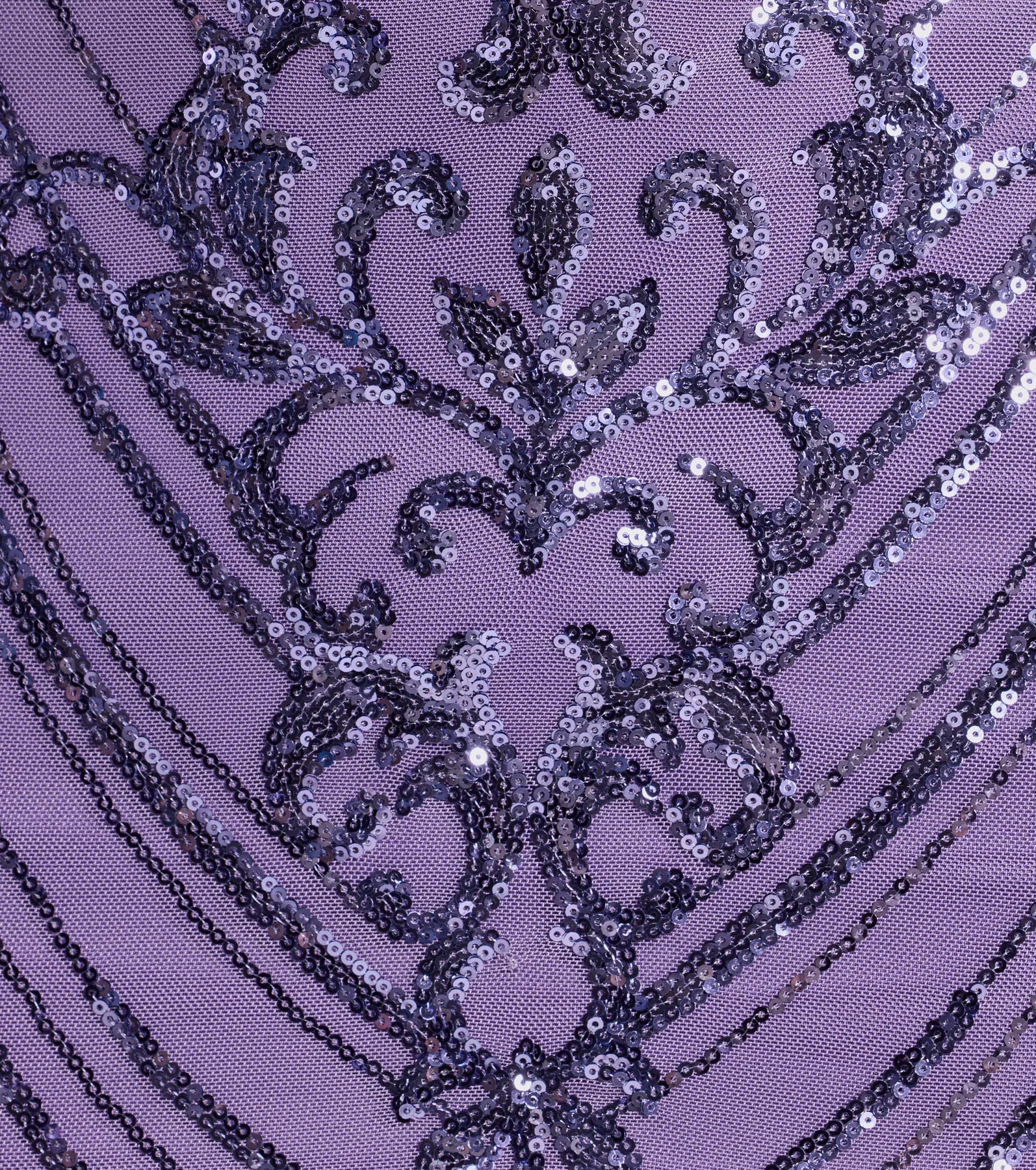 - Sequin embroidered angled scroll pattern