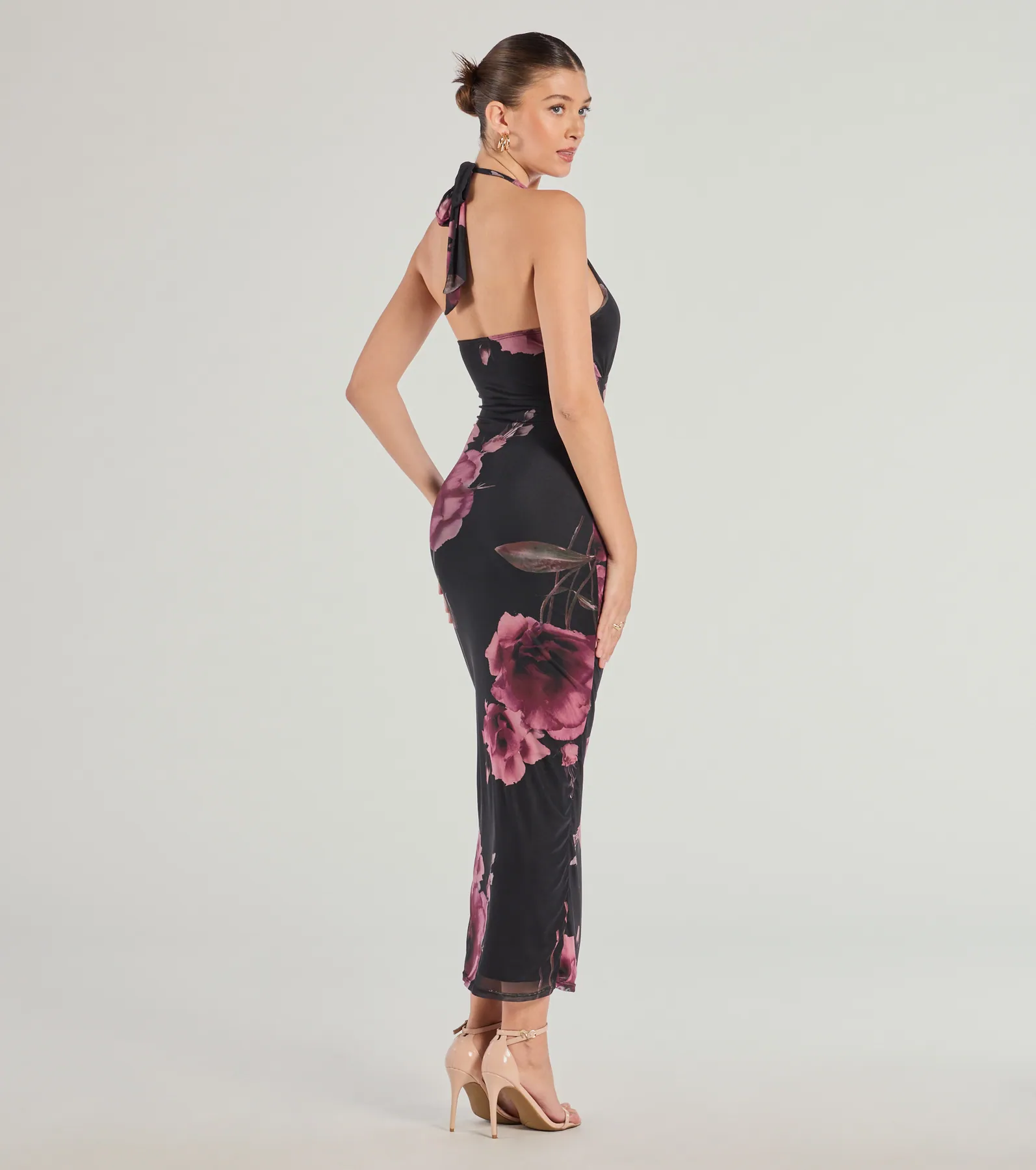 Malia Halter Mermaid Floral Mesh Formal Dress