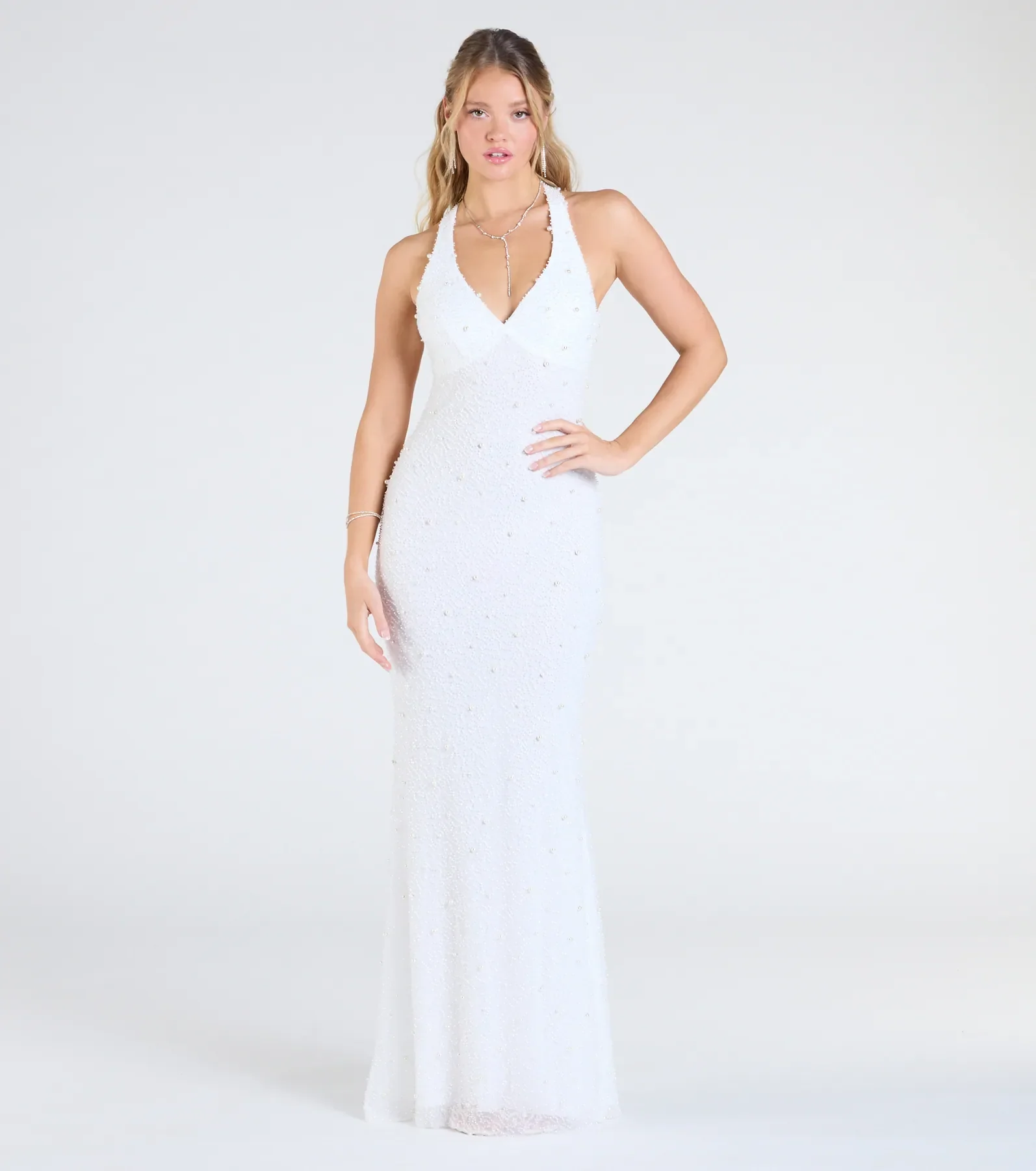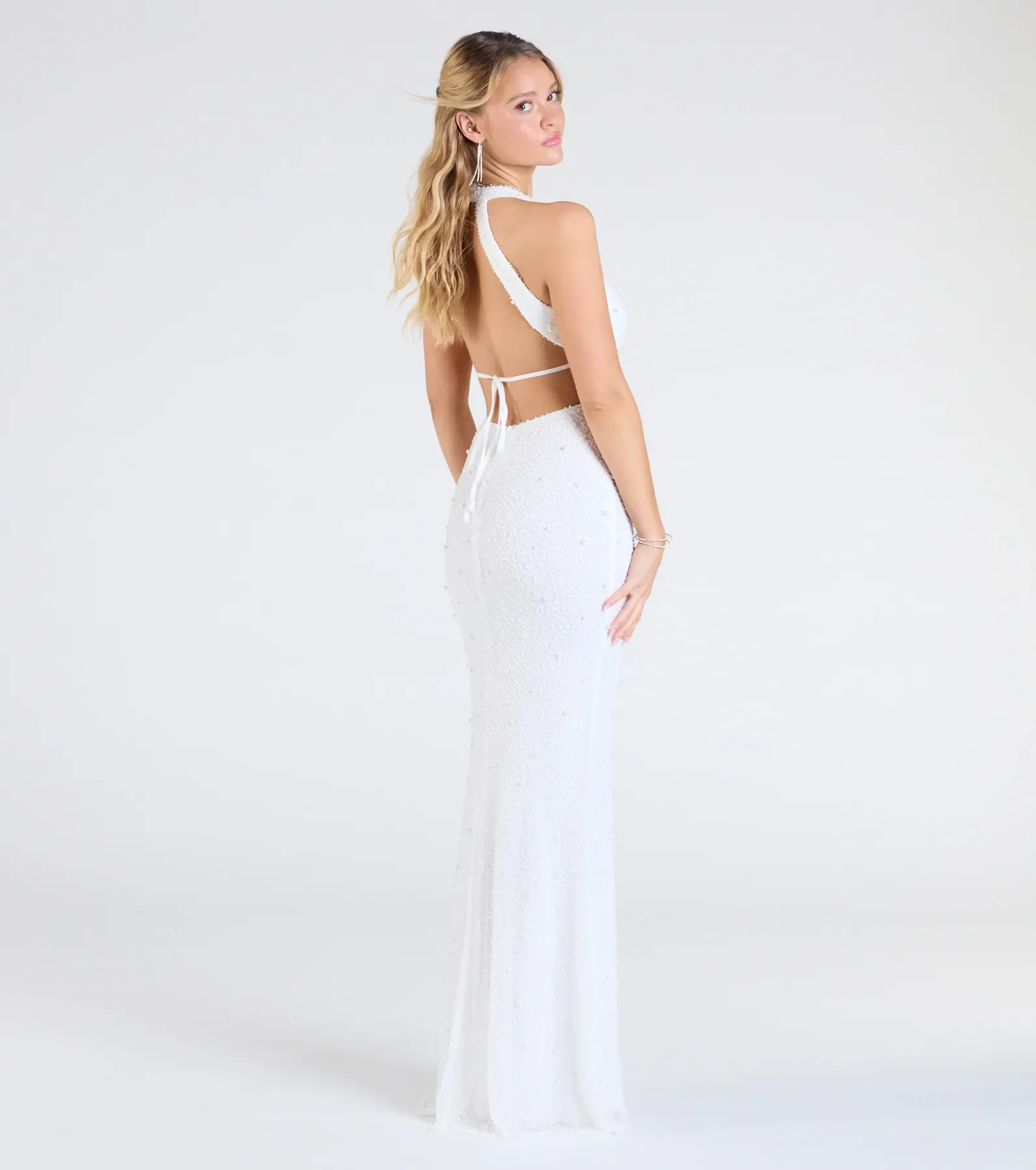 Tyra Halter Open Back Pearl Mermaid Formal Dress