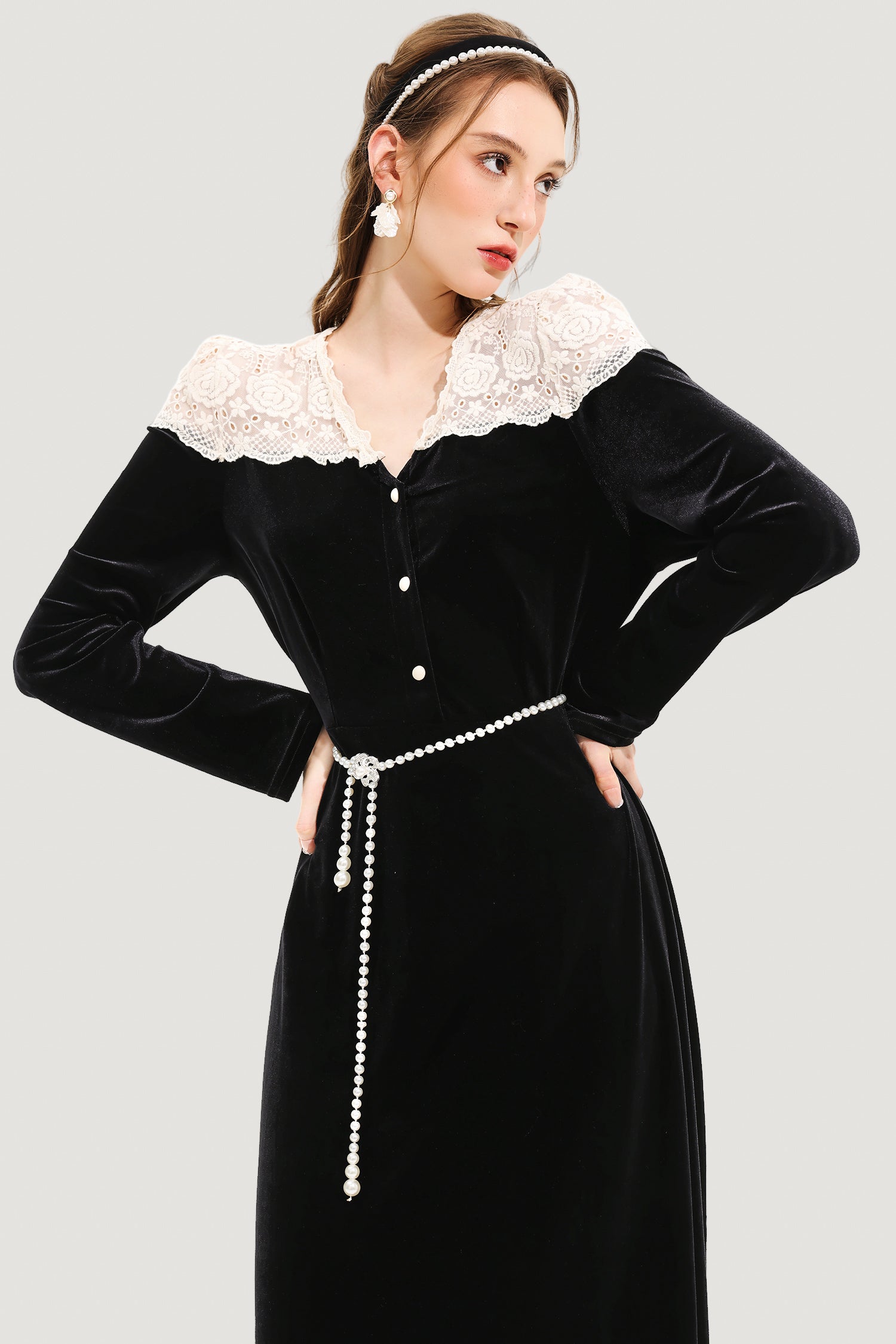 Floral Metal Pearl Waist Chain Silver