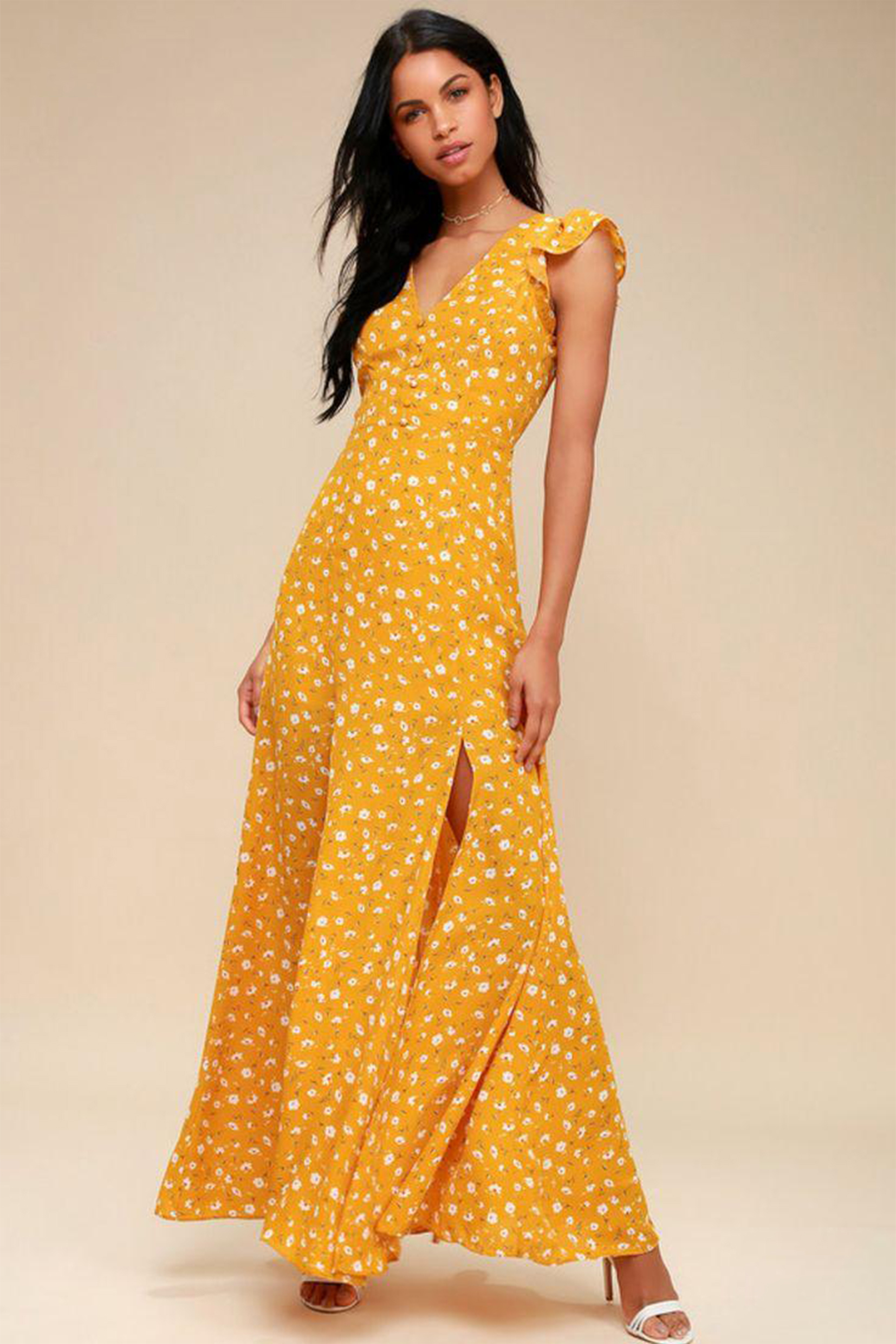 Flutter Sleeve V-Neck Slit Maxi Dress