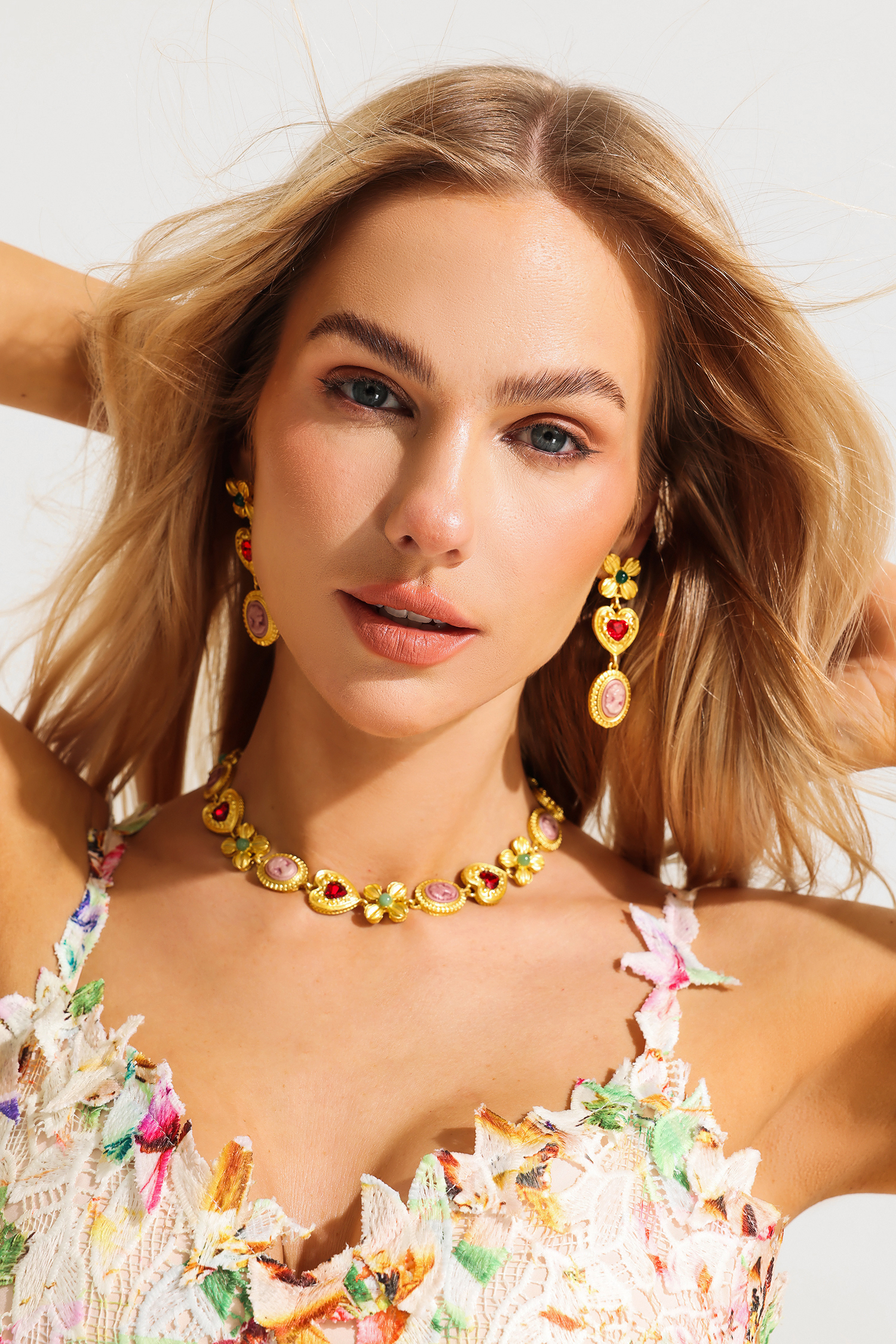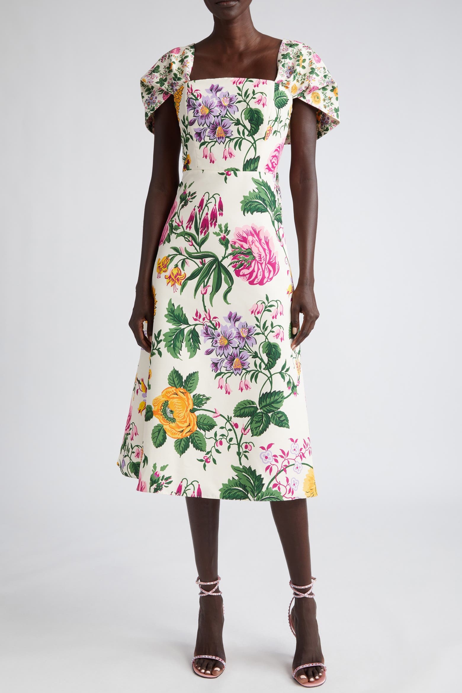 Floral High Collar Sleeveless Lace Up Midi Dress
