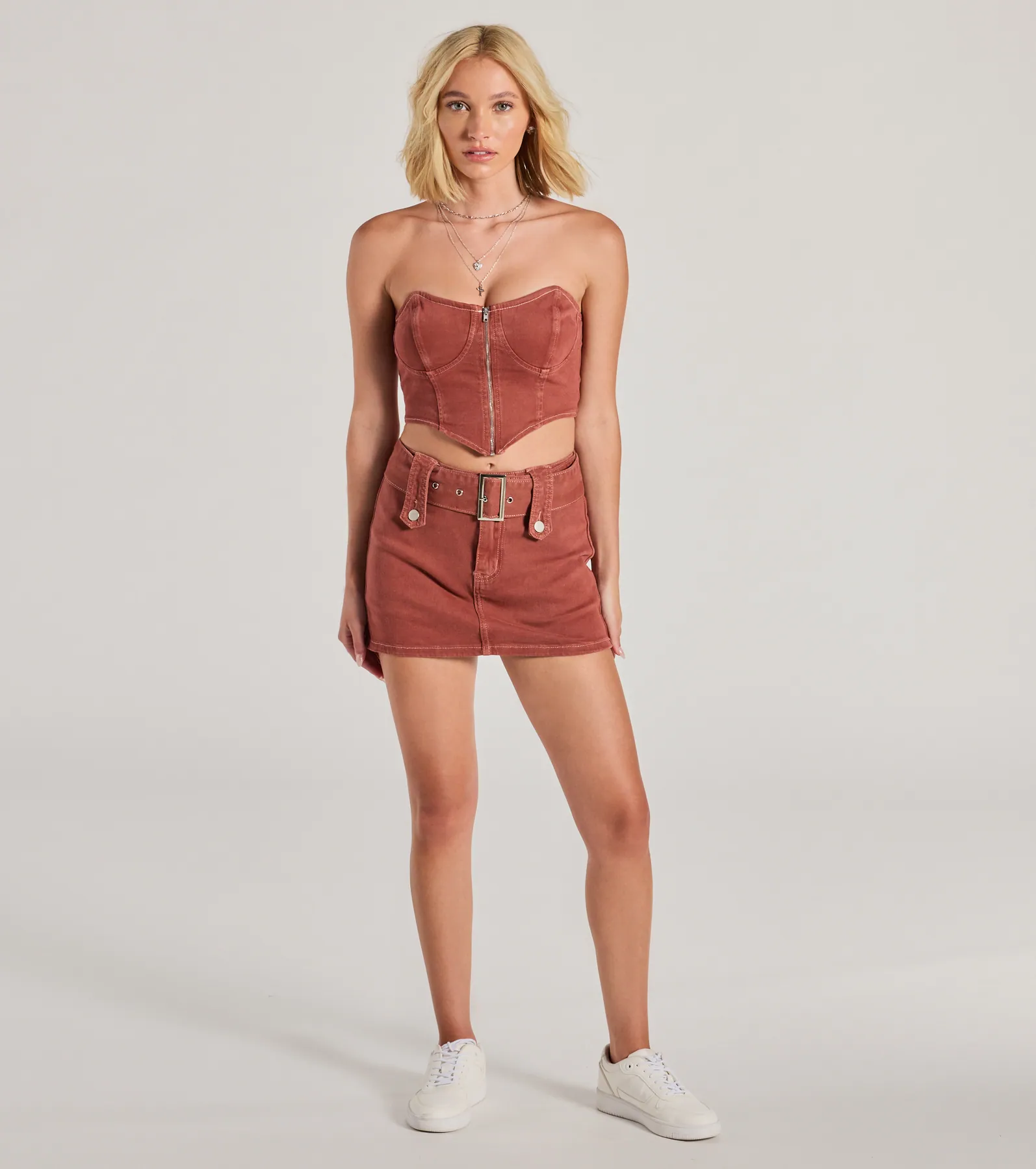 Edgy Yet Sweet Mid-Rise Denim Mini Skort