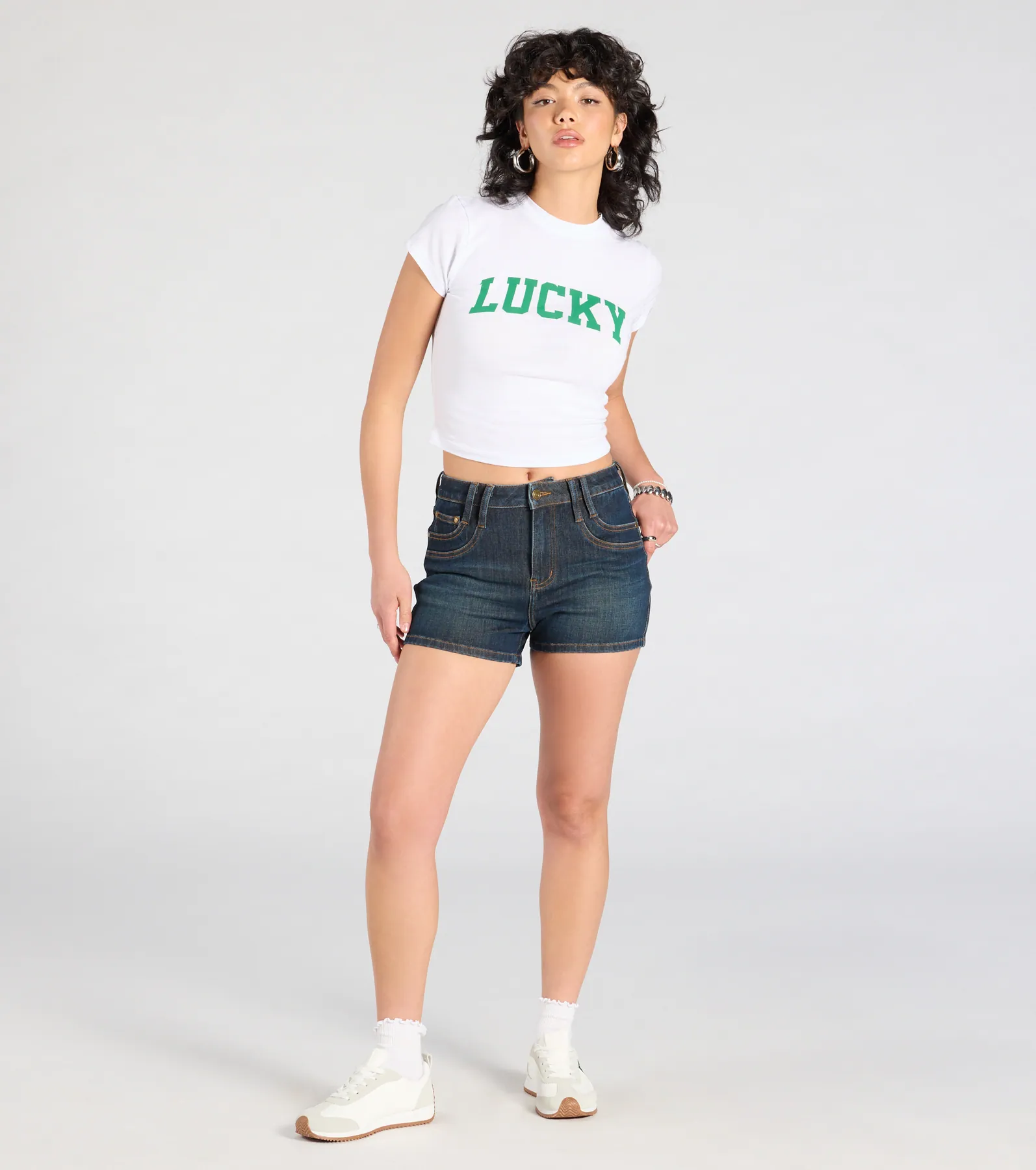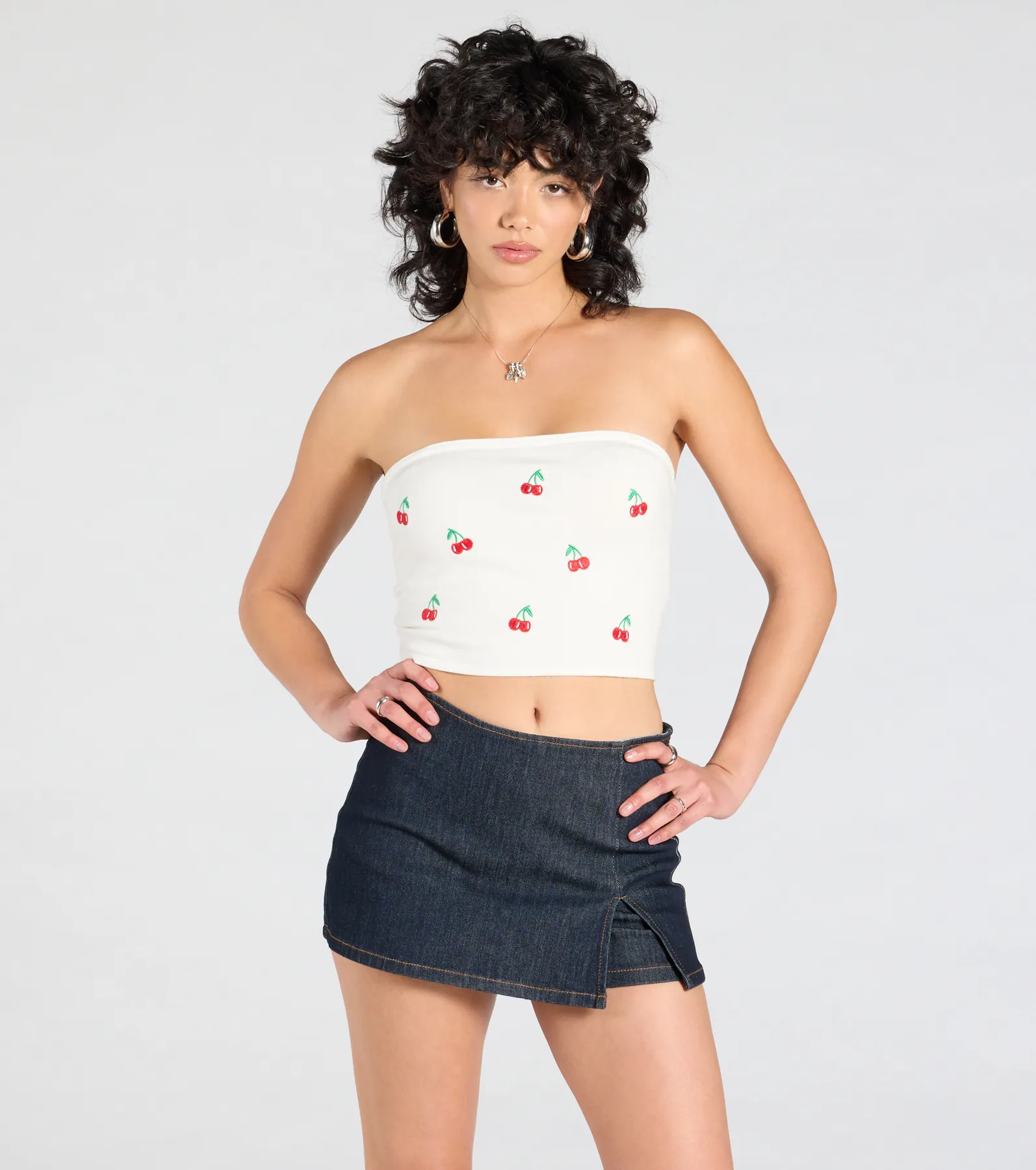 Always Ready Mid-Rise Slit Denim Mini Skort